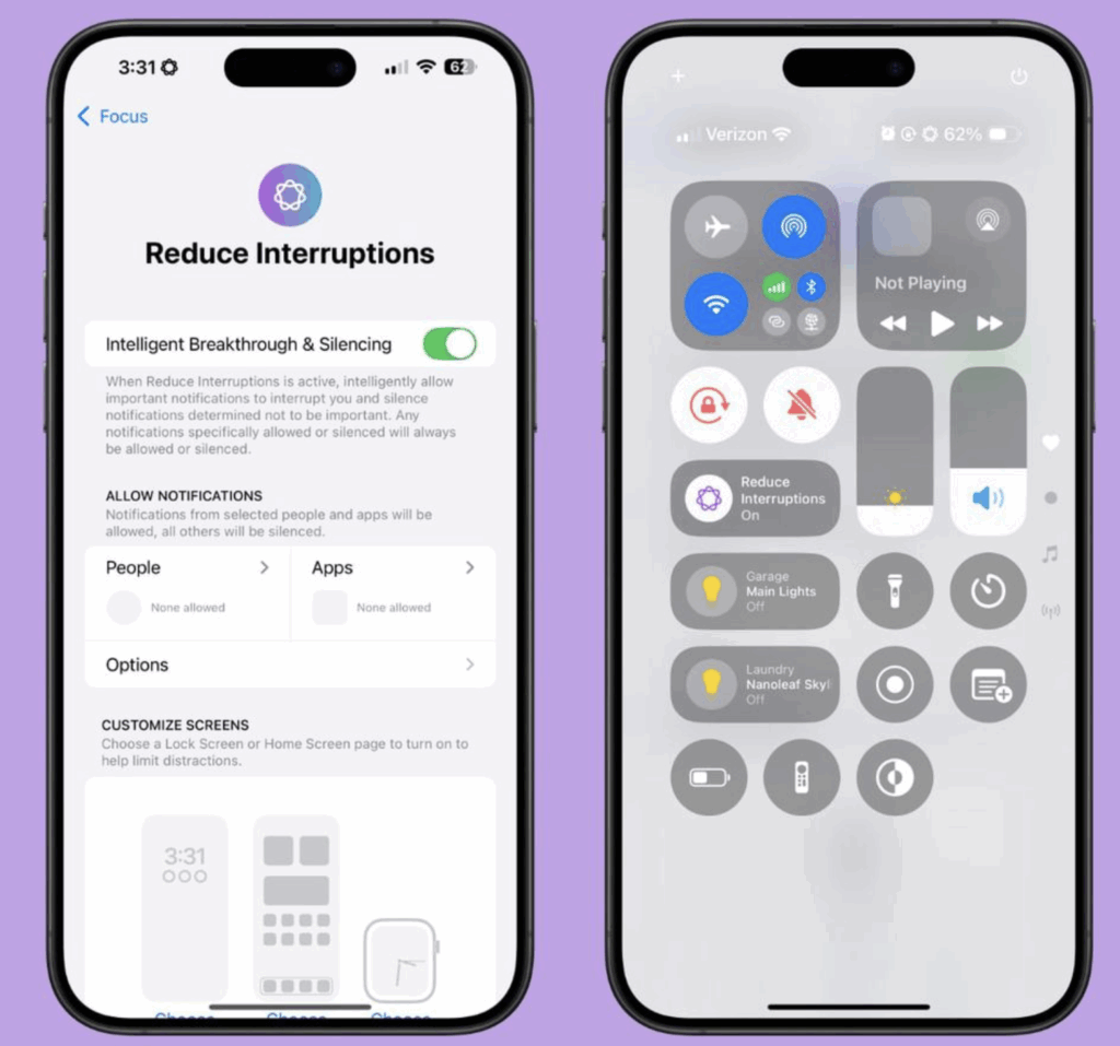 “Learned Interruptions”Apple’s Reduce Interruptions Focus uses Apple Intelligence to detect only urgent items worthy of a pop-up (e.g., a parent’s message or a calendar alert).Peaceful work time, but you still catch important things.