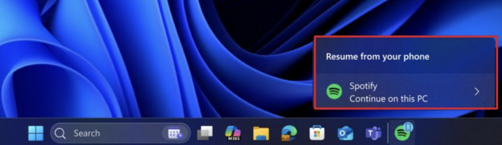 Your Android phone now talks to your Windows PC in useful ways. Listening to Spotify on your phone? Unlocking your PC triggers a notification asking if you want to resume the same song on your computer. This works with Word, Excel, PowerPoint documents, and browsing sessions.