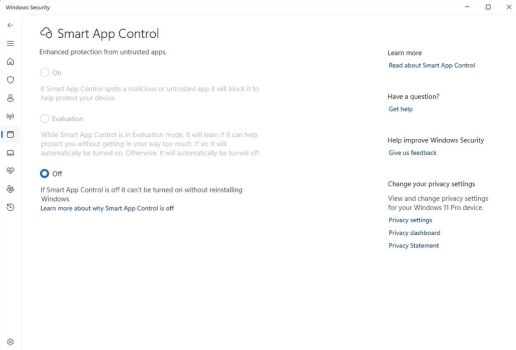 Smart App Control blocks untrusted applications from running. Previously, enabling it meant you needed to reinstall Windows entirely to turn it off. That’s insane.
