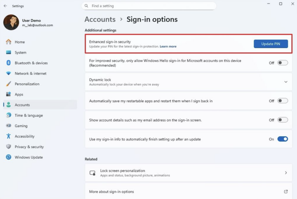 Windows Hello Enhanced Sign-in Security now supports external fingerprint readers. Desktop users without built-in biometric hardware can now use Windows Hello’s security benefits with third-party readers.